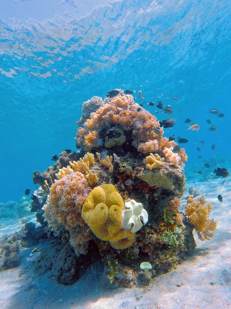 Swim alongside graceful manta rays at Komodo’s vibrant cleaning stations, where these gentle giants glide through crystal-clear waters.