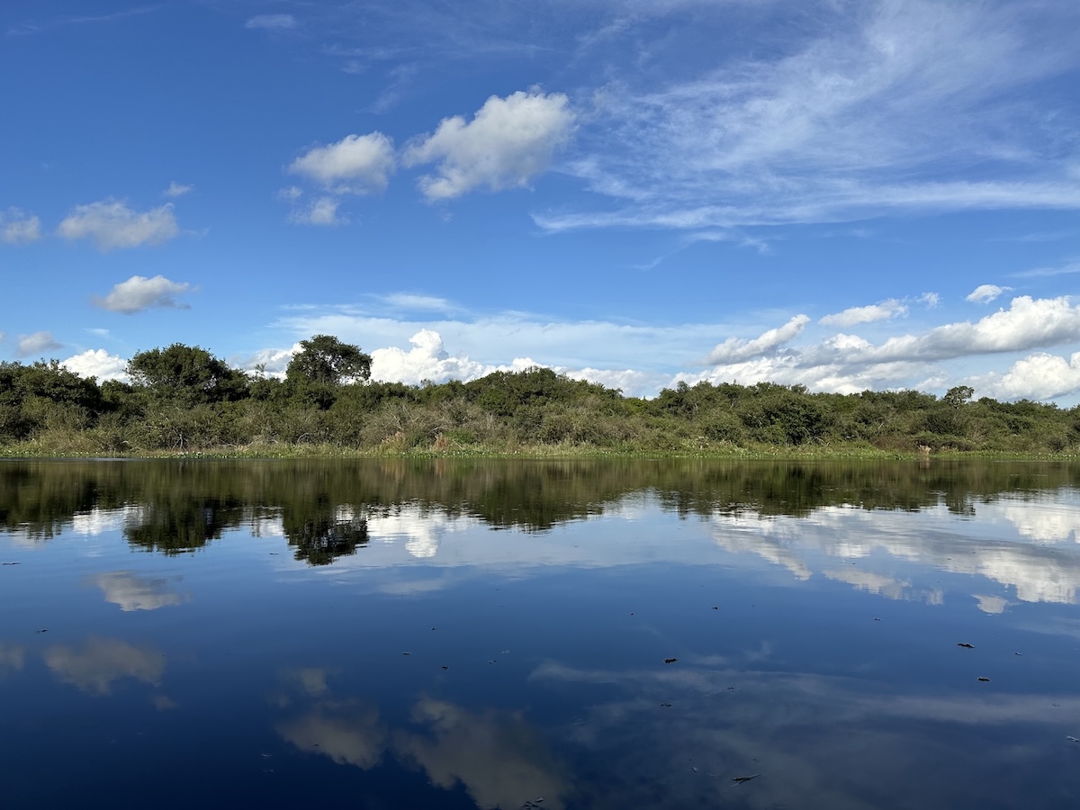 In the afternoon, we’ll switch to the water with a canoe trip led by a local Pantaneiro, so your hands stay free for photos. We’ll paddle through calm waterways, spotting birds, capybaras, caimans, and mirrored forest reflections.