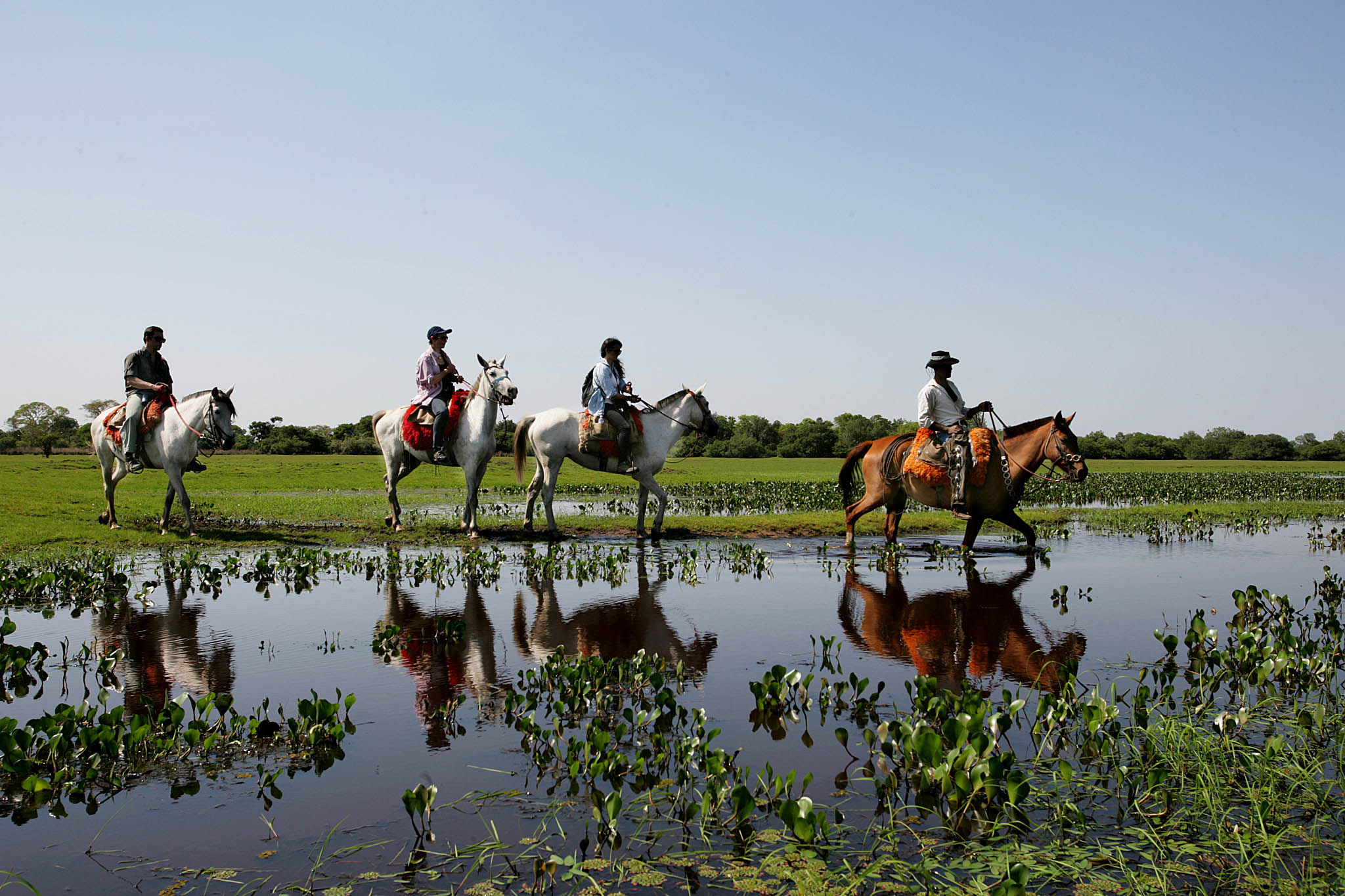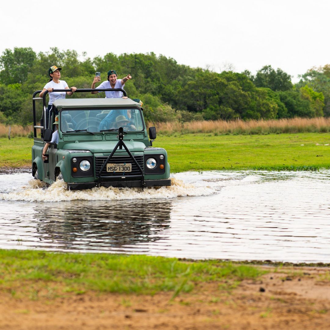 Travel by 4WD vehicle from Campo Grande into the Southern Pantanal, enjoying scenic landscapes and wildlife sightings along the way. Arrive at Baía das Pedras Pantanal Lodge, a family-owned ranch in the heart of the wetlands, and take an introductory walk to explore the surrounding grasslands and lagoons.