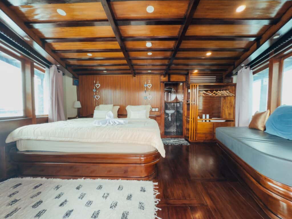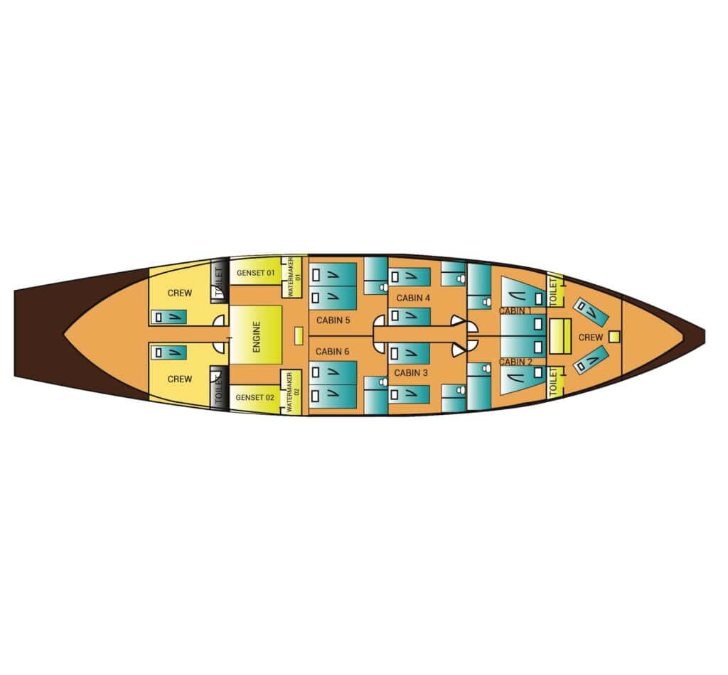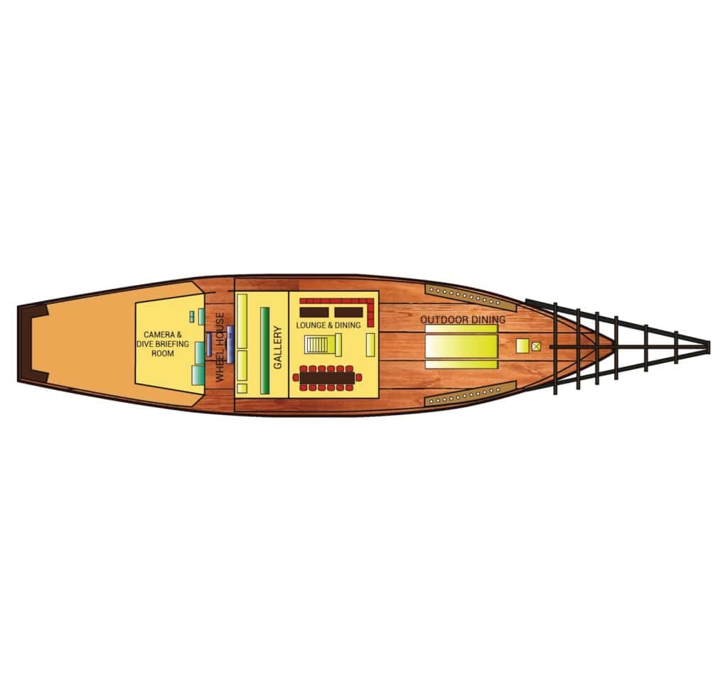 The Hatiku is a Phinisi, a traditional Indonesian wooden sailing vessel with a centuries-old history. Originally built by the Bugis people of Sulawesi for trade and transport across the archipelago, Phinisi boats have evolved into popular liveaboard vessels for divers and explorers. Their distinctive design and craftsmanship provide both practicality and a connection to Indonesia’s maritime heritage, creating an authentic experience while you explore the region’s incredible underwater landscapes.