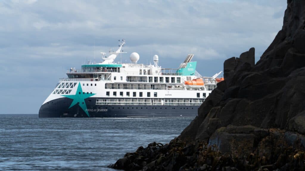 The vessel is equipped with industry-leading safety systems (including return-to-port capability and medical clinic facilities designed for remote regions) and sustainable technologies, such as efficient propulsion and energy systems that reduce fuel consumption and environmental impact.