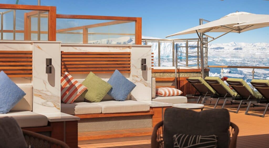 Adventure Access: Purpose-built Zodiac embarkation points and a dedicated activities platform make getting off-ship for shore landings and wildlife encounters fast and safe, supporting activities like kayaking, polar hikes, and beach landings.